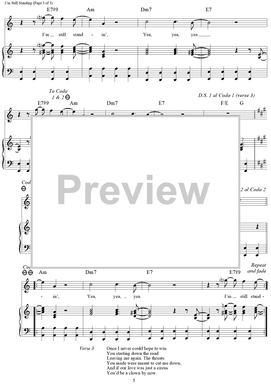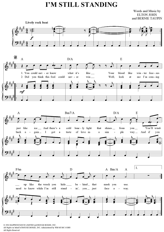 Digital Sheet Music for I'm Still Standing by Elton John, Bernie Taupin scored for Piano/Vocal/Chords; id:111150