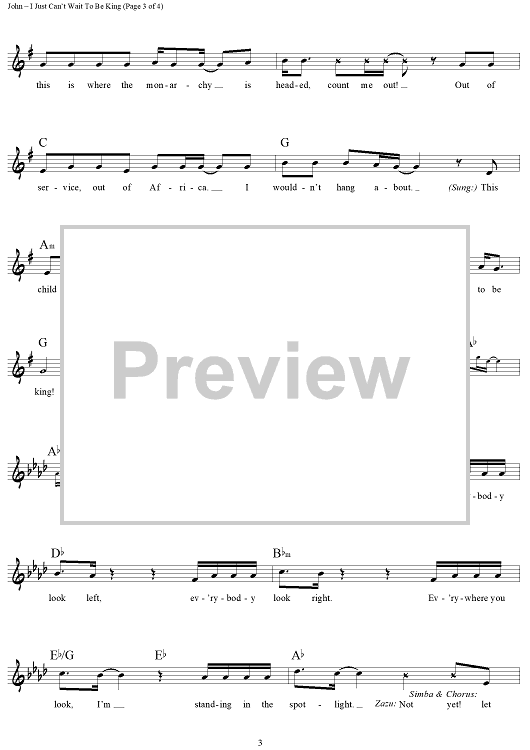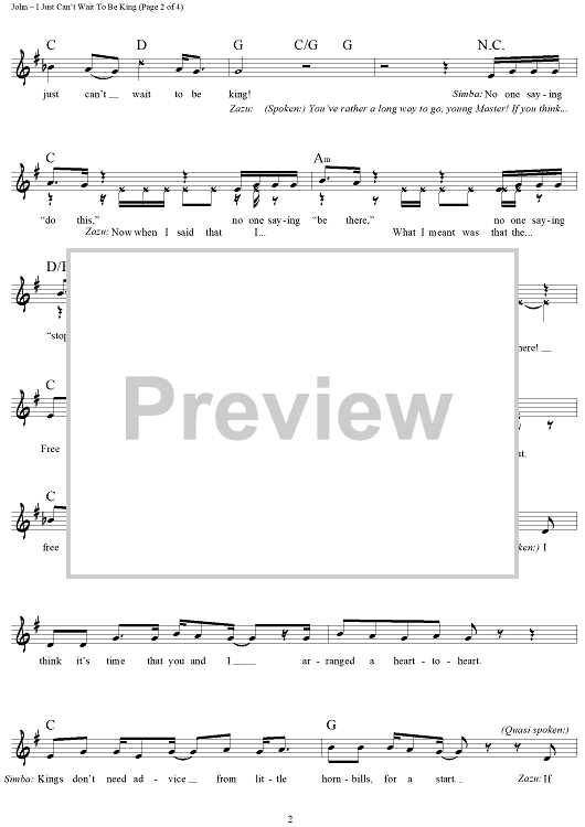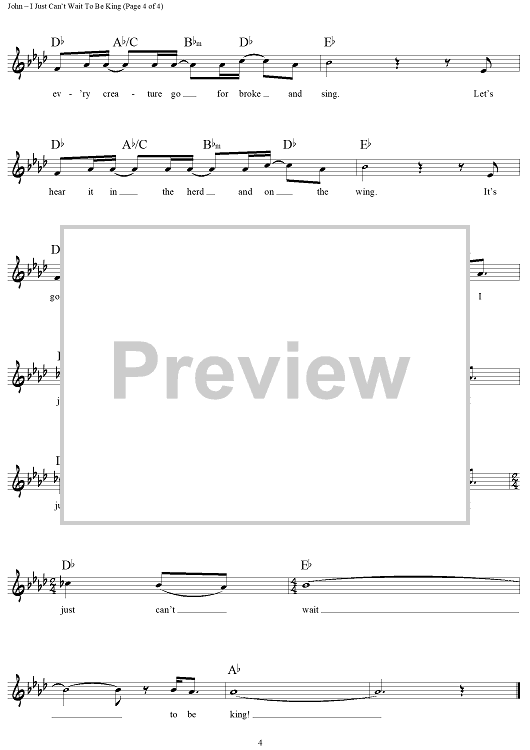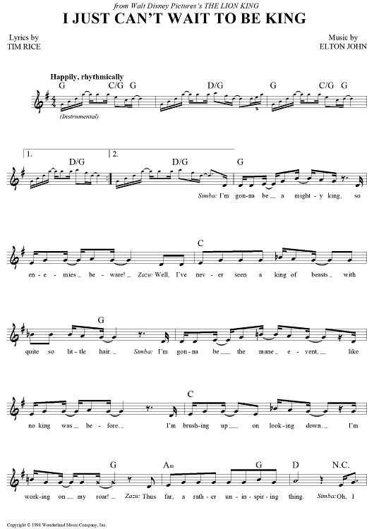Digital Sheet Music for Just Can't Wait To Be King by Elton John, Tim Rice scored for Lead Sheet; id:441851