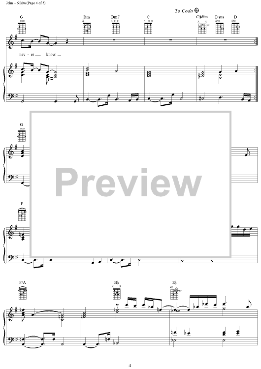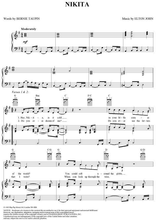 Digital Sheet Music for Nikita by Elton John, Bernie Taupin scored for Piano/Vocal/Chords; id:297508