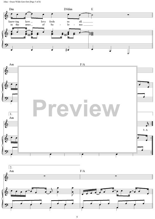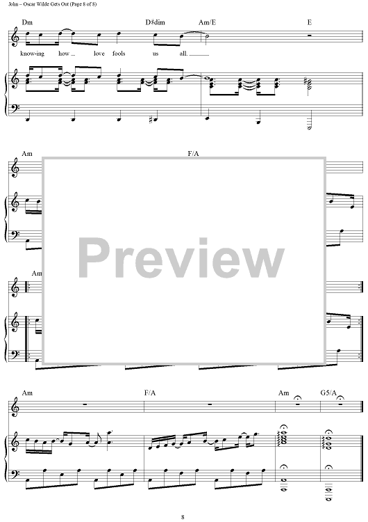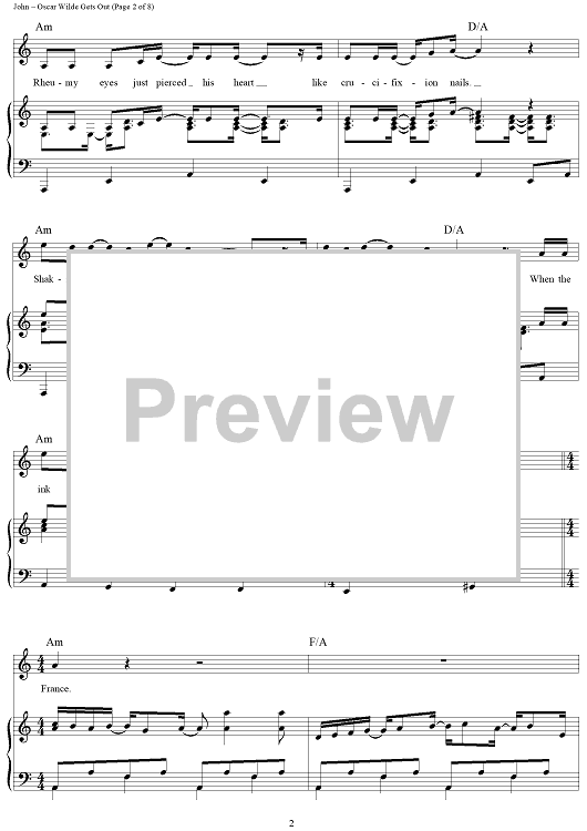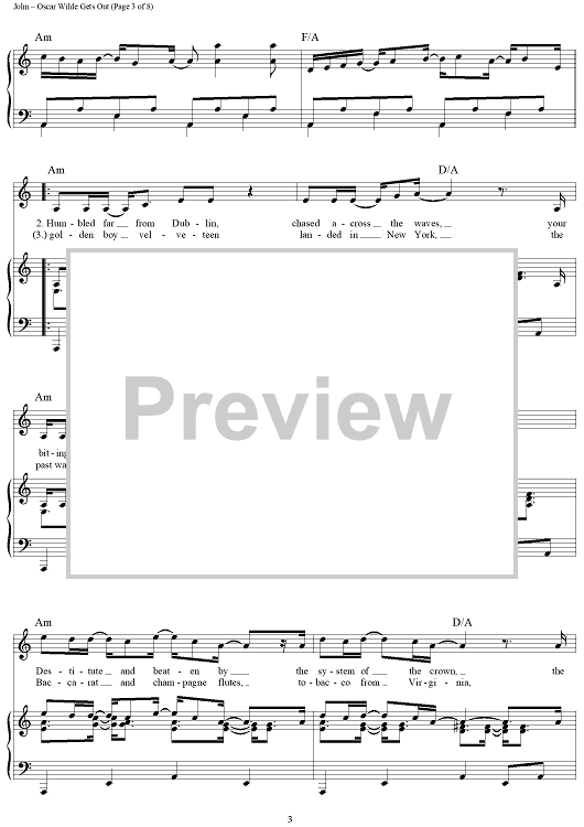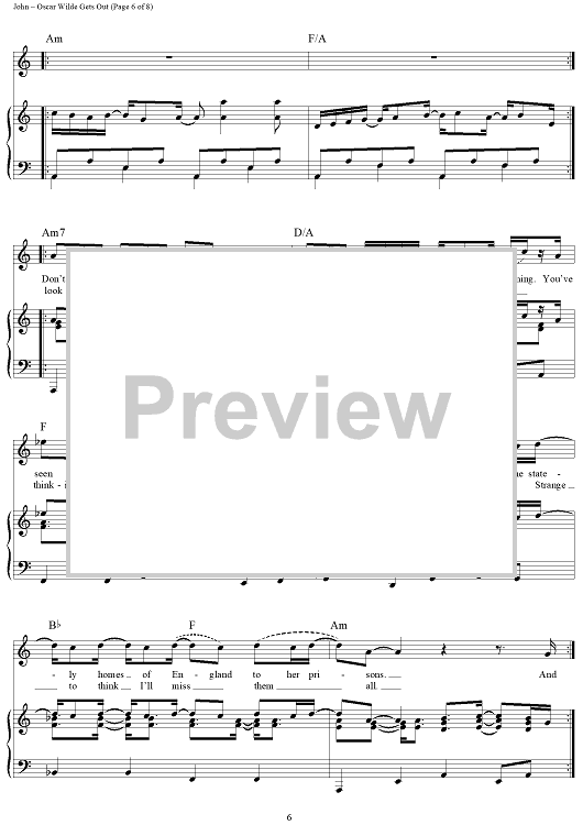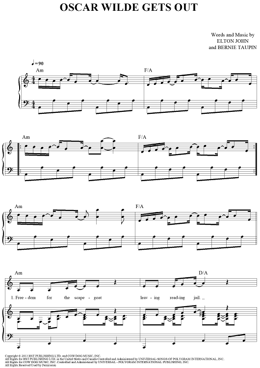 Digital Sheet Music for Oscar WIlde Gets Out by Elton John, Bernie Taupin scored for Piano/Vocal/Chords; id:442022