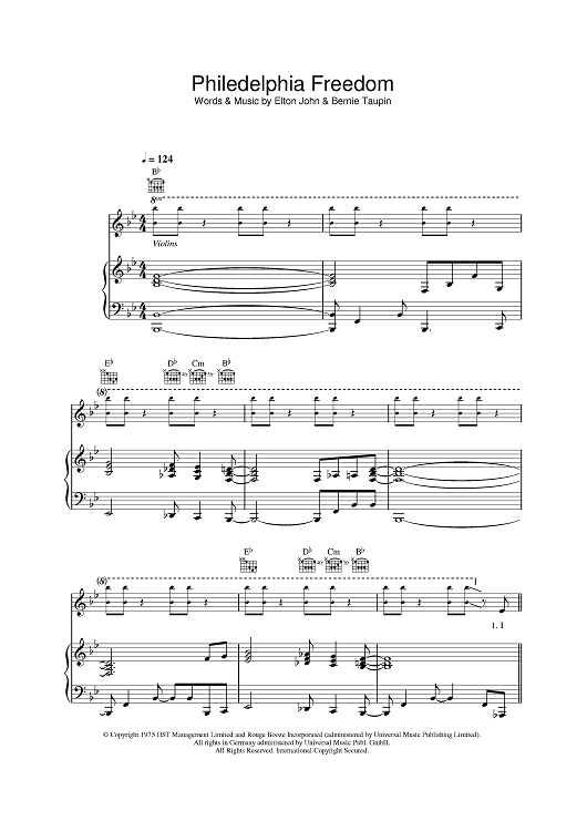 Digital Sheet Music for Philadelphia Freedom by Elton John, Bernie Taupin scored for Piano/Vocal/Chords; id:401220