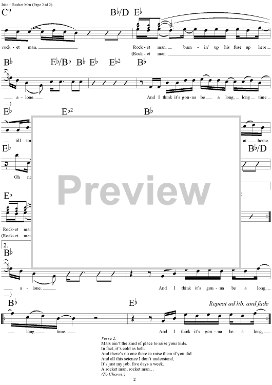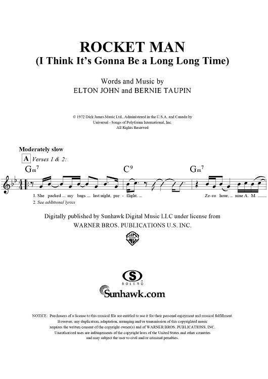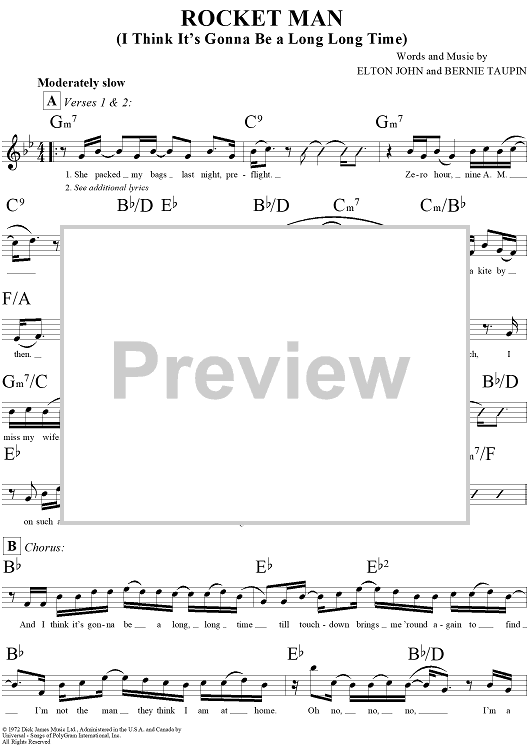 Digital Sheet Music for Rocket Man by Elton John, Bernie Taupin scored for Lead Sheet; id:294196