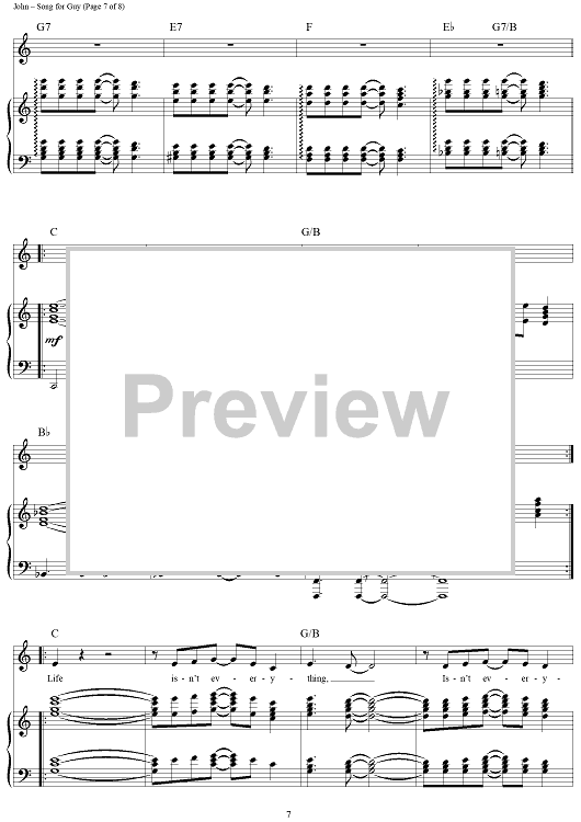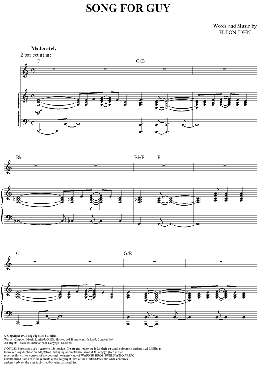 Digital Sheet Music for Song for Guy by Elton John scored for Piano/Vocal/Chords; id:284118