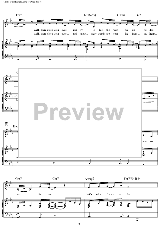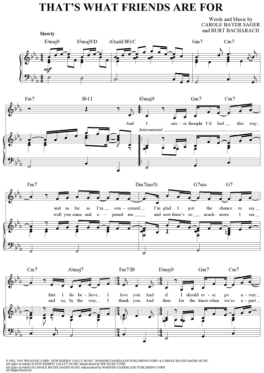 Digital Sheet Music for That's What Friends Are For by Carole Bayer Sager, Burt Bacharach, Elton John, Stevie Wonder, Dionne Warwick, Gladys Knight scored for Piano/Vocal/Chords; id:110703