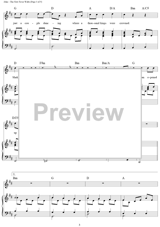 Digital Sheet Music for The New Fever Waltz by Elton John, Bernie Taupin scored for Piano/Vocal/Chords; id:444027