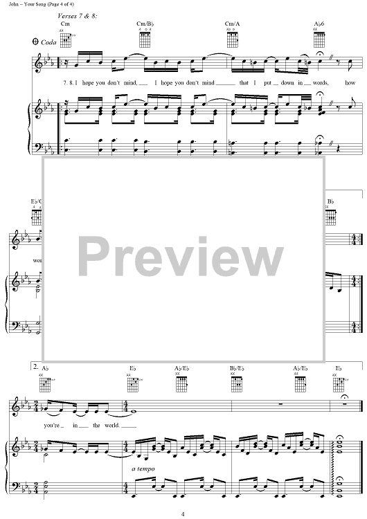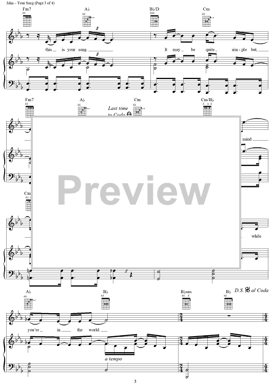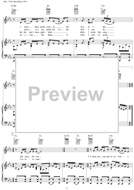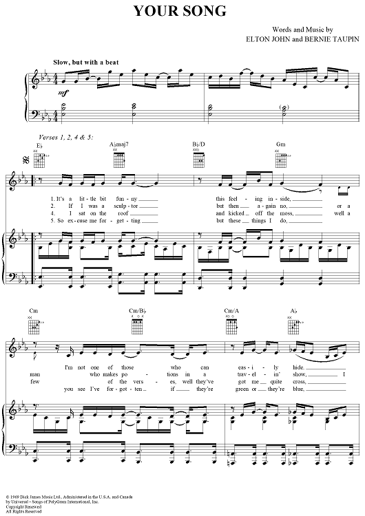 Digital Sheet Music for Your Song by Elton John, Bernie Taupin scored for Piano/Vocal/Chords; id:295112