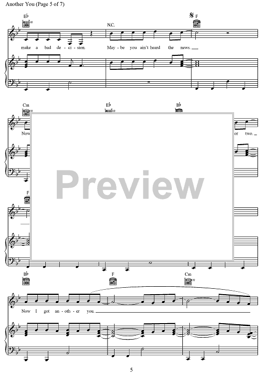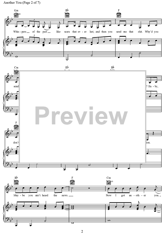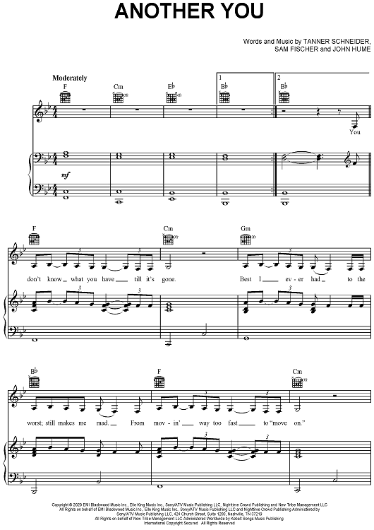Digital Sheet Music for Another You by Tanner Schneider, Elle King, Sam Fischer, John Hume scored for Piano/Vocal/Chords; id:468828