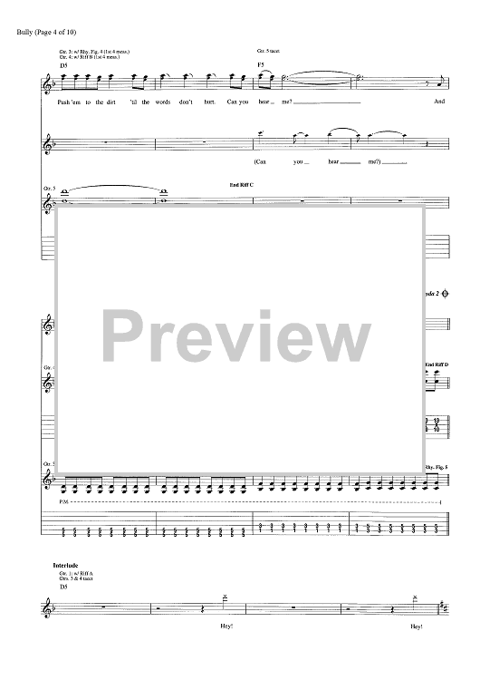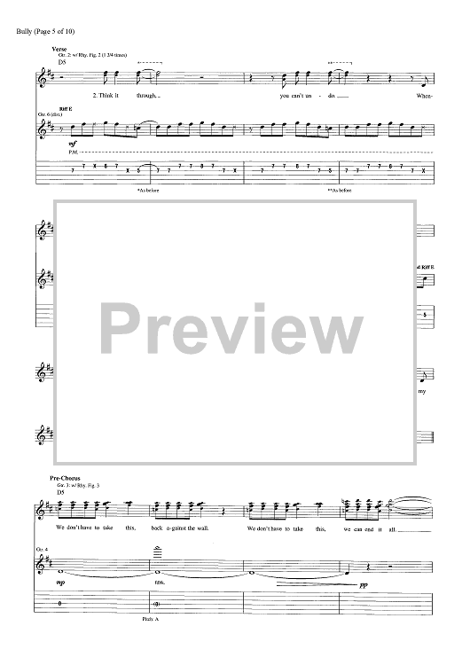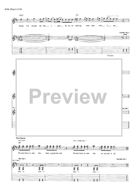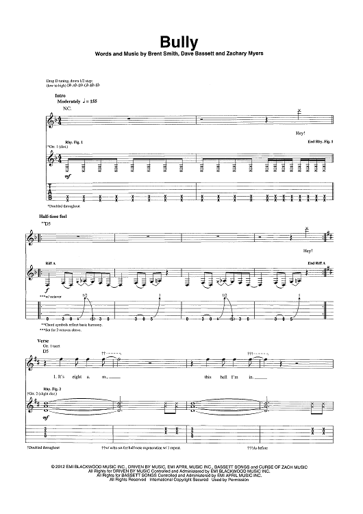 Digital Sheet Music for Bully by Dave Bassett, Shinedown, Brent Smith, Zachary Myers scored for Guitar Tab; id:463847
