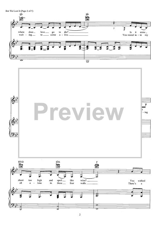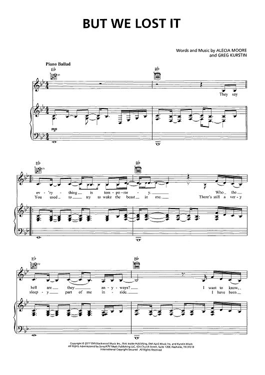 Digital Sheet Music for But We Lost It by Alicia B. Moore, Greg Kurstin, Pink scored for Piano/Vocal/Chords; id:466262