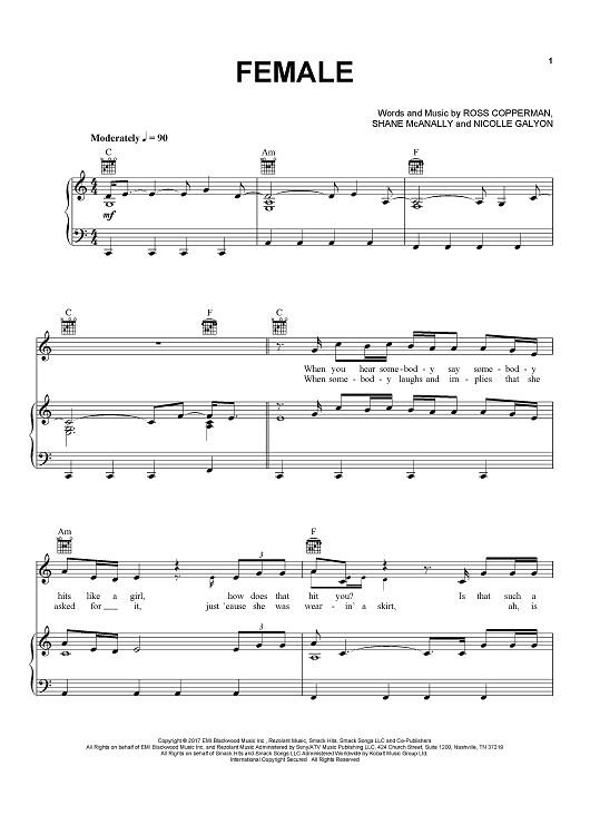 Digital Sheet Music for Female by Shane McAnally, Nicolle Galyon, Ross Copperman, Keith Urban scored for Piano/Vocal/Chords; id:465818