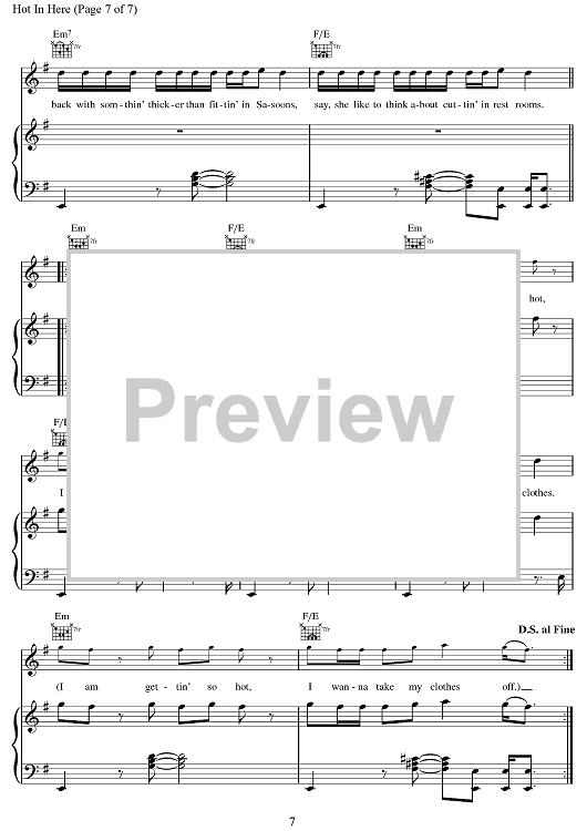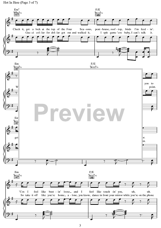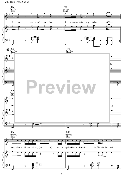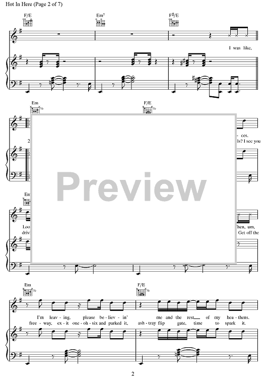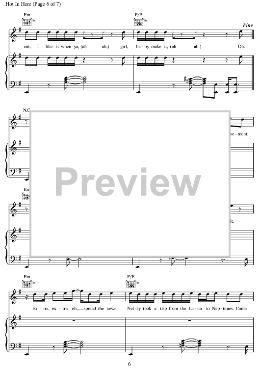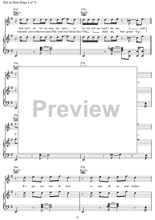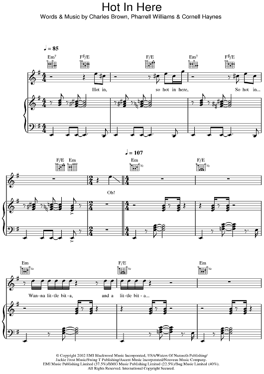 Digital Sheet Music for Hot In Here by Charles Brown, Pharrell Williams, Nelly, Cornell Haynes scored for Piano/Vocal/Chords; id:387023