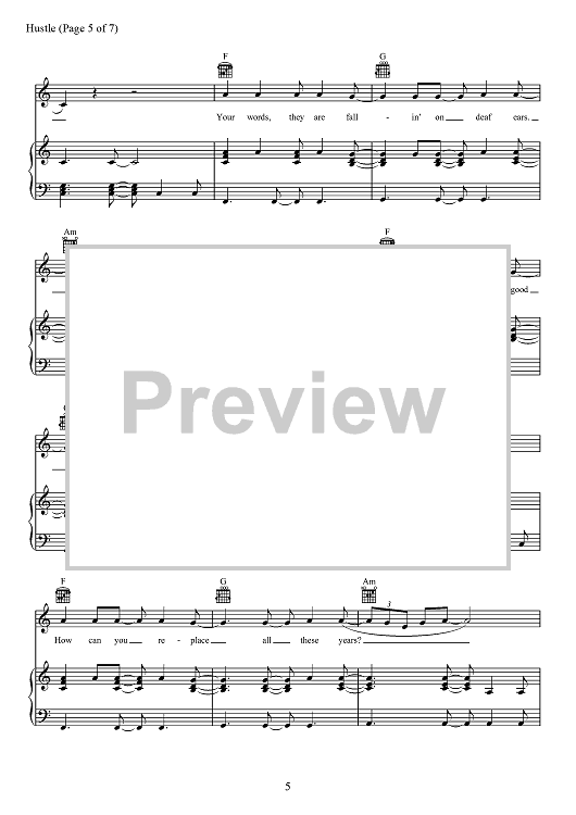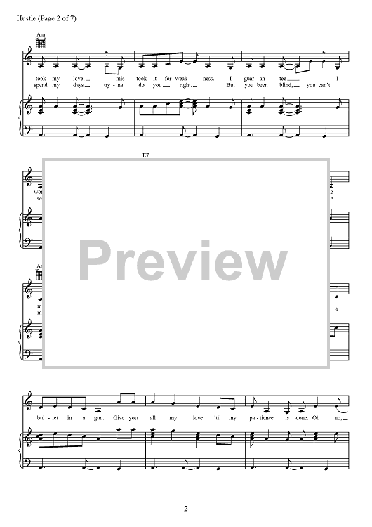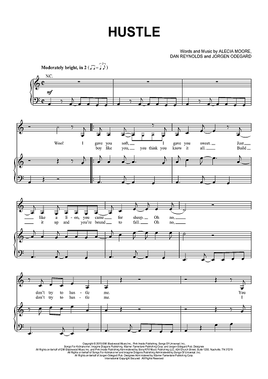 Digital Sheet Music for Hustle by Alicia B. Moore, Pink, Daniel Reynolds, Jorgen Odegard scored for Piano/Vocal/Chords; id:467476