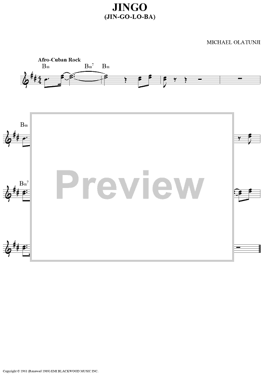 "Jingo (Jin-Go-Lo-Ba)" Sheet Music by Michael Olatunji