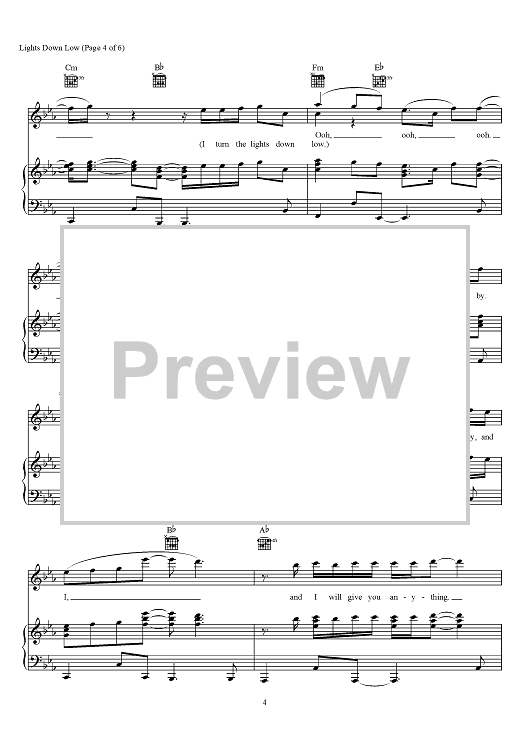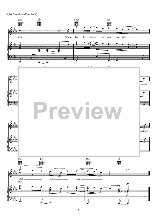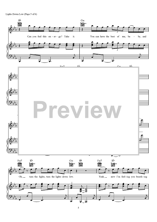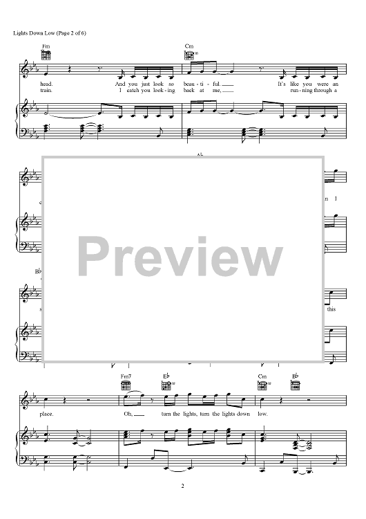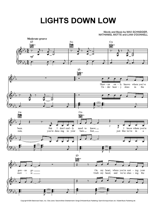 Digital Sheet Music for Lights Down Low by Nathaniel Motte, Liam O'Donnell, Max Schneider, MAX scored for Piano/Vocal/Chords; id:466289