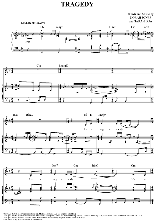 Digital Sheet Music for Tragedy by Norah Jones, Sarah Oda scored for Piano/Vocal/Chords; id:464709