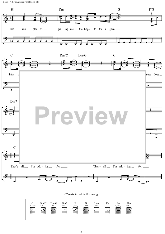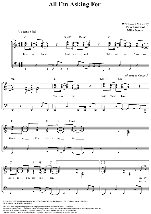 Digital Sheet Music for All I'm Asking For by Tom Lane, Mike Demus scored for Piano/Vocal/Chords; id:204420