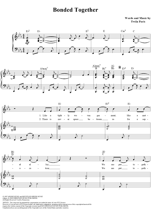 Digital Sheet Music for Bonded Together by Twila Paris scored for Piano/Vocal/Chords; id:108915