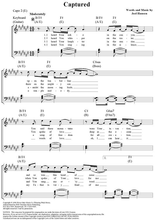 Digital Sheet Music for Captured by Joel Hanson scored for Piano/Vocal/Chords; id:283224
