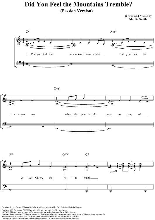 Digital Sheet Music for Did You Feel The Mountains Tremble? (Passion Version) by Martin Smith, Delirious? scored for Piano/Vocal/Chords; id:108980