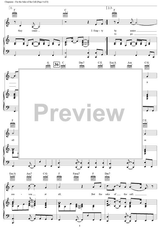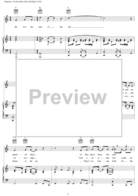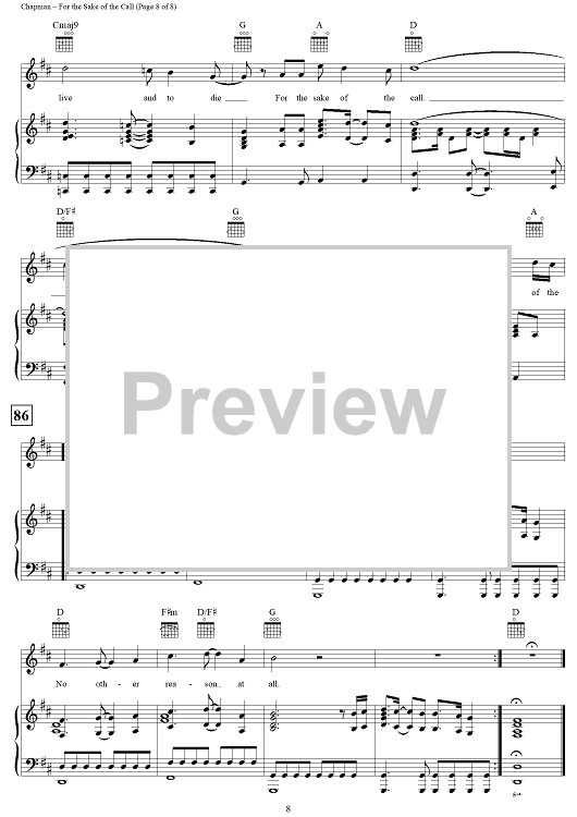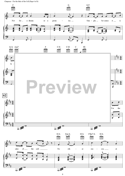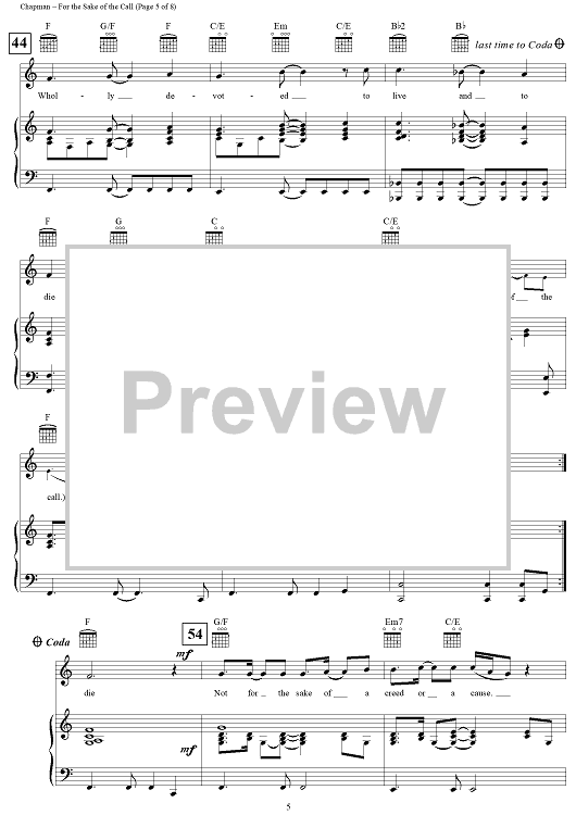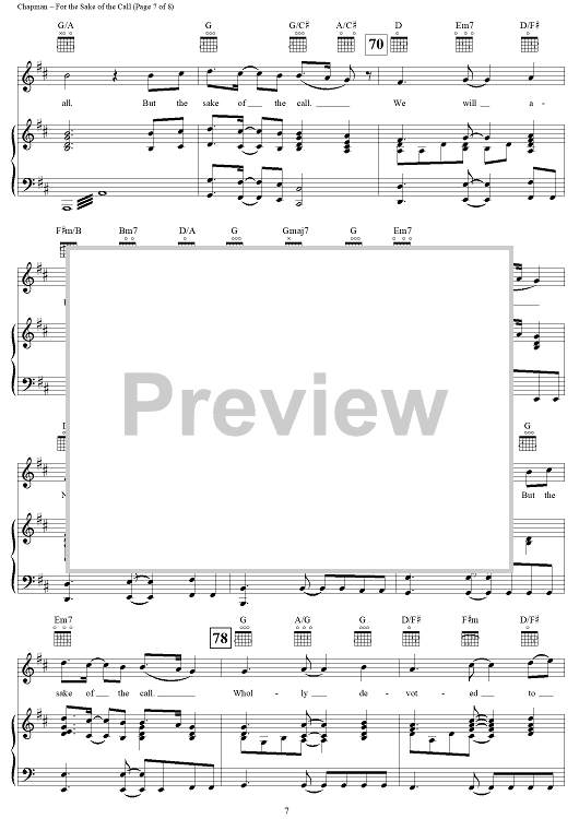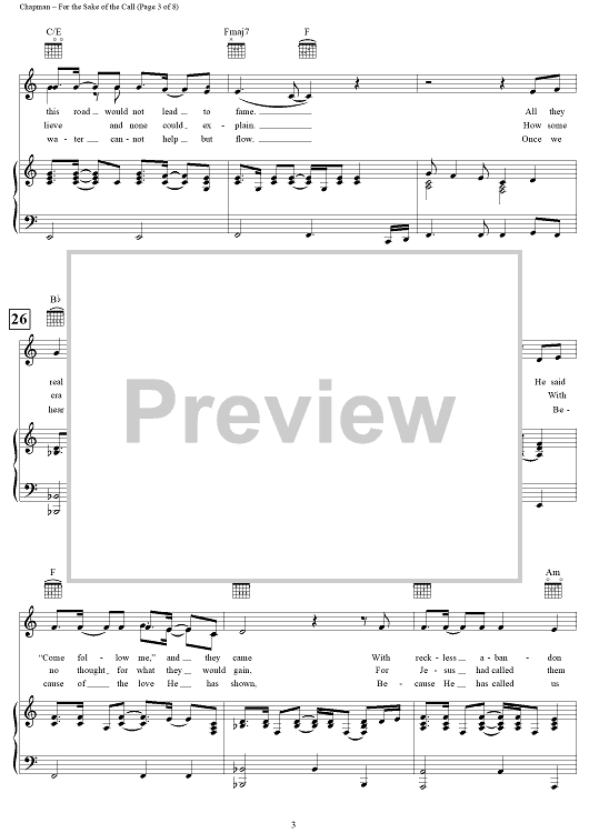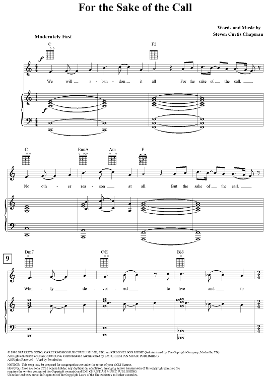 Digital Sheet Music for For the Sake of the Call by Steven Curtis Chapman scored for Piano/Vocal/Chords; id:113812