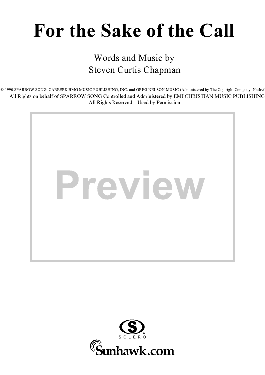 "For the Sake of the Call" Sheet Music by Steven Curtis Chapman
