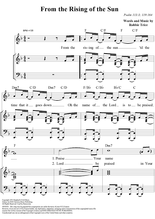 "From the Rising of the Sun" Sheet Music by Robbie Trice