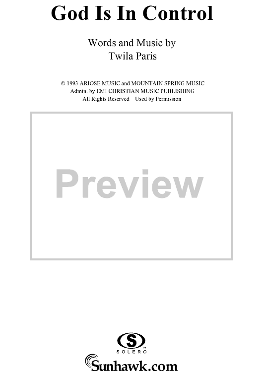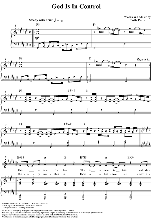 Digital Sheet Music for God Is In Control by Twila Paris scored for Piano/Vocal/Chords; id:113691