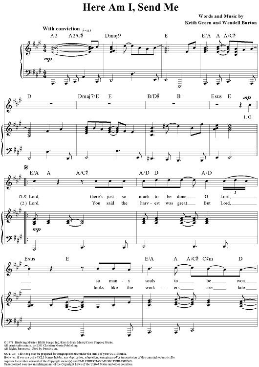 Digital Sheet Music for Here Am I, Send Me by Keith Green, Wendell Burton scored for Piano/Vocal/Chords; id:111205