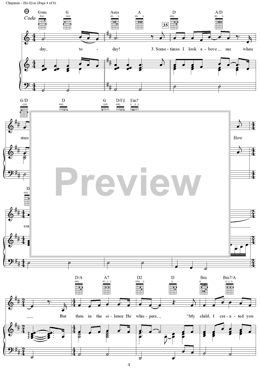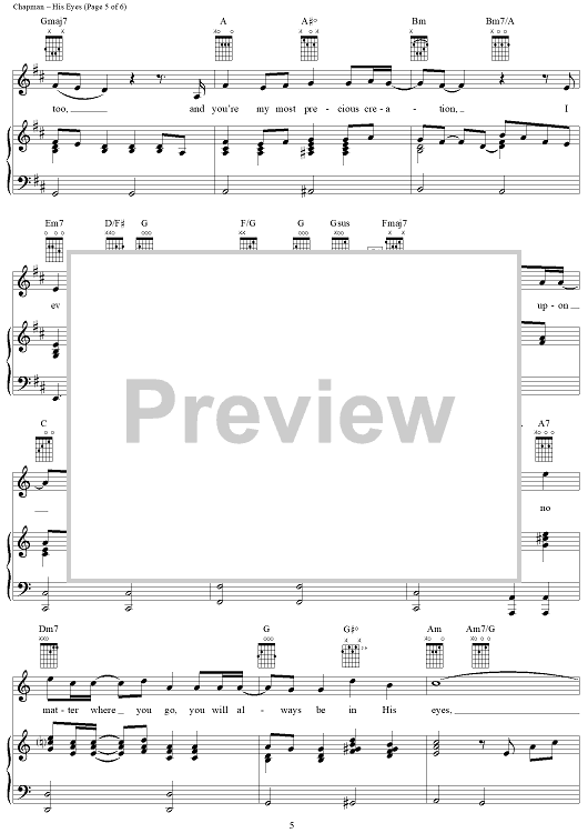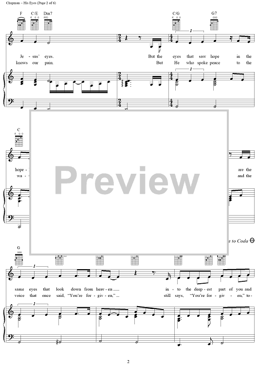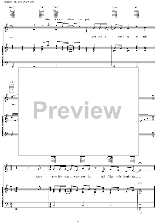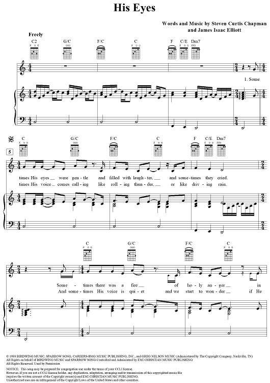 Digital Sheet Music for His Eyes by Steven Curtis Chapman, James Isaac Elliott scored for Piano/Vocal/Chords; id:241658