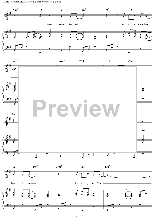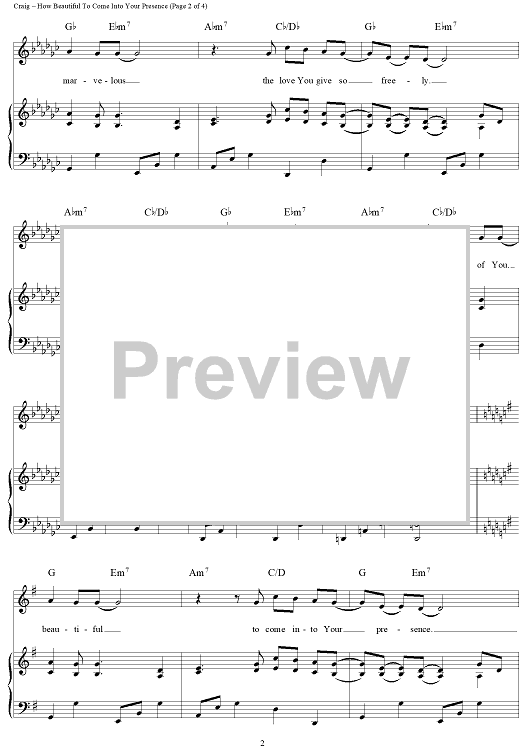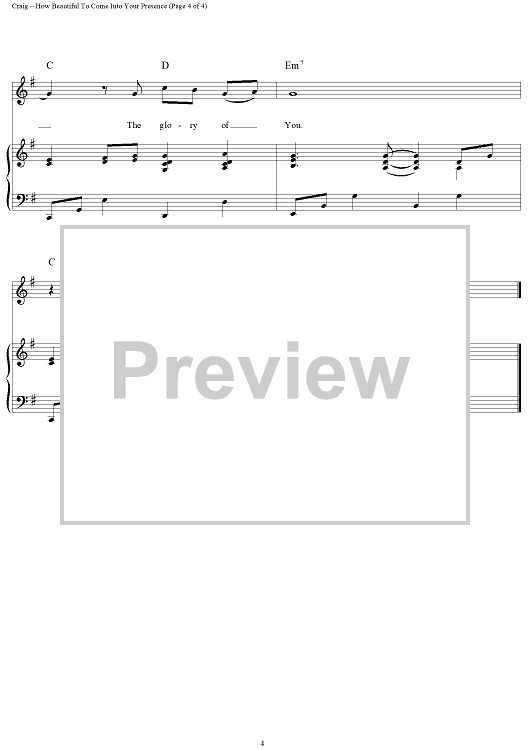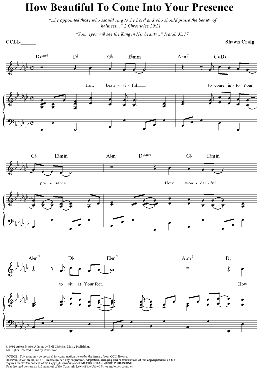 Digital Sheet Music for How Beautiful To Come Into Your Presence by Shawn Craig scored for Piano/Vocal/Chords; id:110324