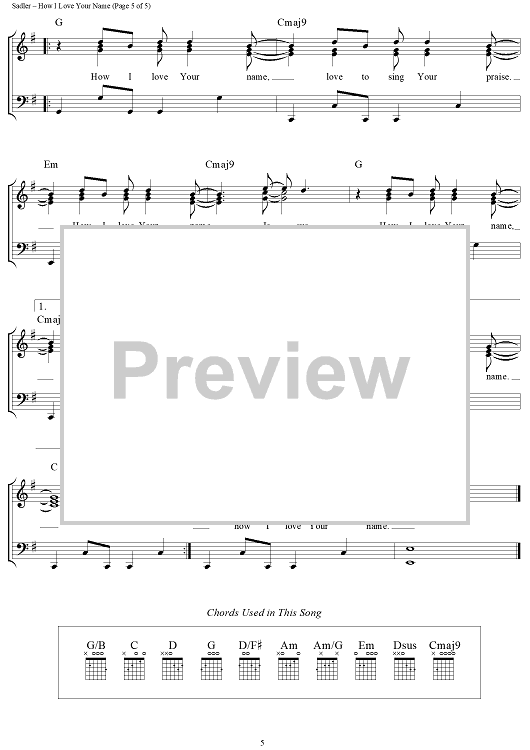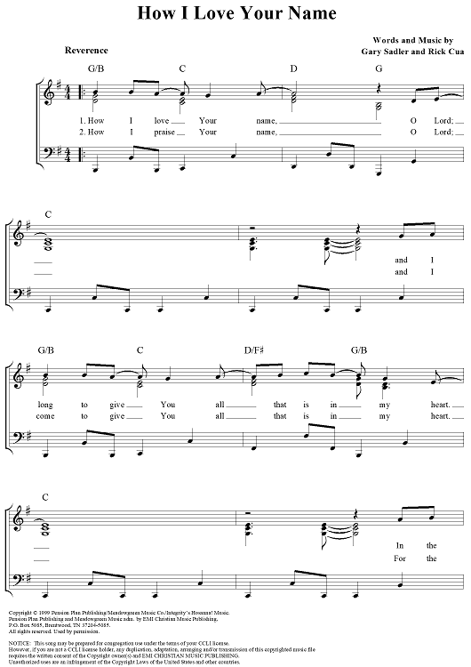 Digital Sheet Music for How I Love Your Name by Gary Sadler, Rick Cua scored for Piano/Vocal/Chords; id:119974