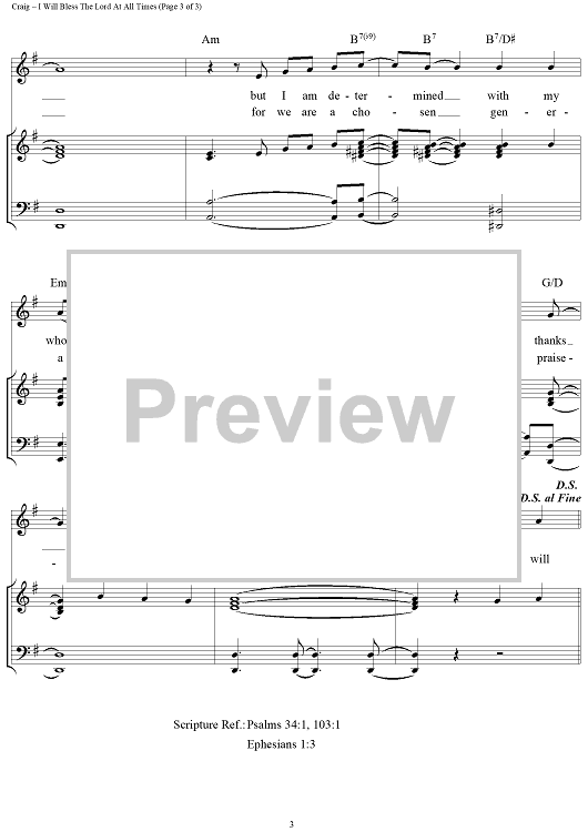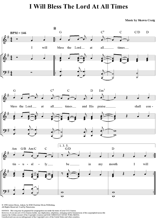 "I Will Bless the Lord at All Times" Sheet Music by Shawn Craig