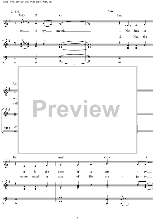 Digital Sheet Music for I Will Bless the Lord at All Times by Shawn Craig scored for Piano/Vocal/Chords; id:109852