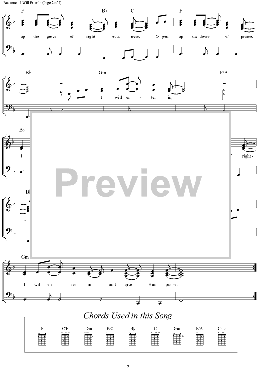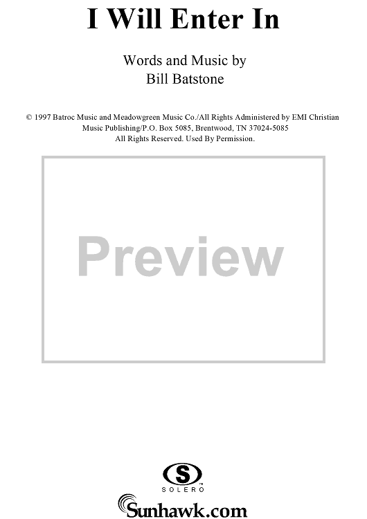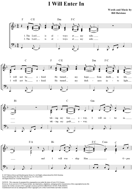 Digital Sheet Music for I Will Enter In by Bill Batstone scored for Piano/Vocal/Chords; id:276219