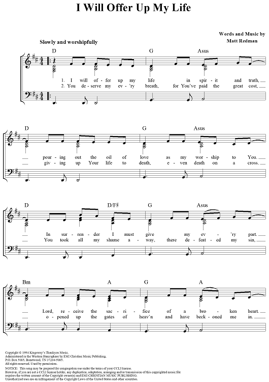 Digital Sheet Music for I Will Offer Up My Life by Matt Redman scored for Piano/Vocal/Chords; id:283119