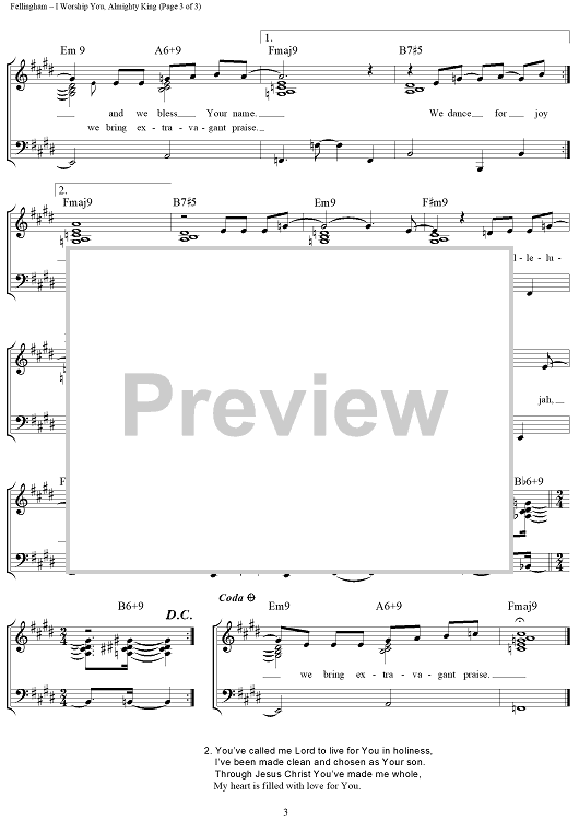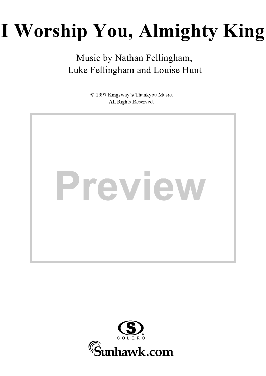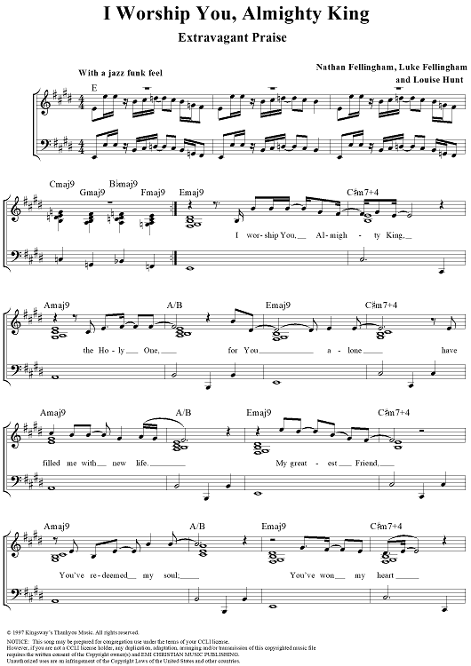 Digital Sheet Music for I Worship You, Almighty King (Extravagant praise) by Nathan Fellingham, Luke Fellingham, Louise Hunt, Phatfish scored for Piano/Vocal/Chords; id:269967
