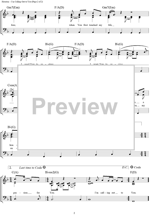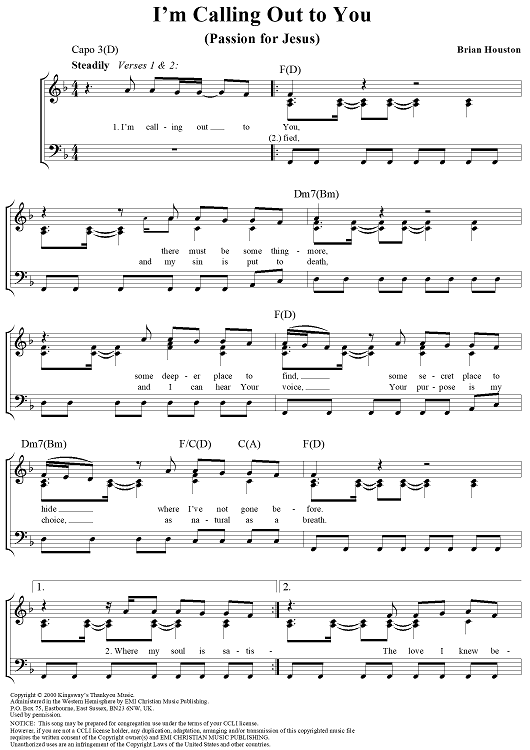 Digital Sheet Music for I'm Calling Out To You (Passion for Jesus) by Brian Houston scored for Piano/Vocal/Chords; id:283050