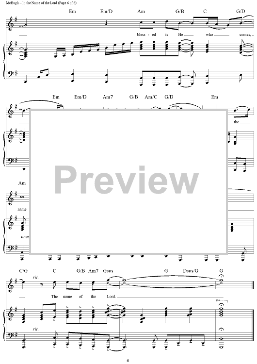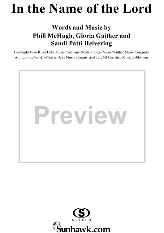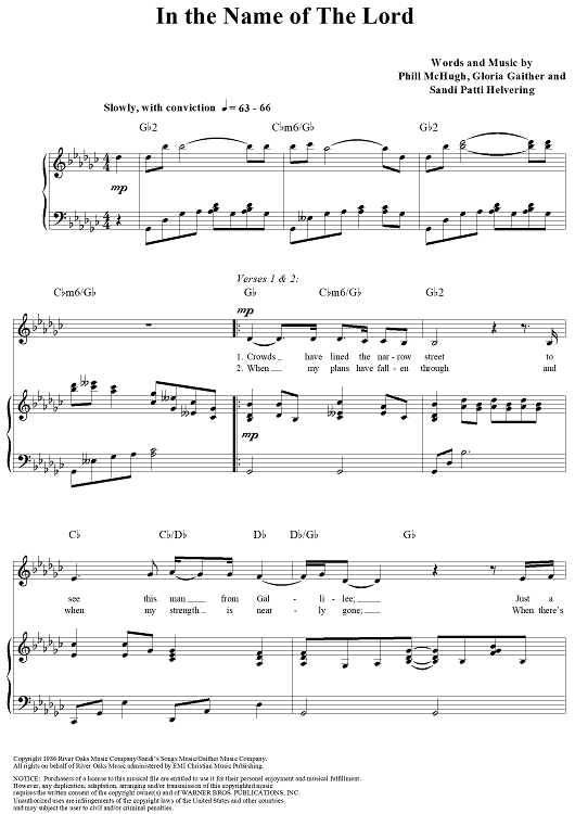 Digital Sheet Music for In the Name of the Lord by Phill McHugh, Gloria Gaither, Sandi Patty scored for Piano/Vocal/Chords; id:252820