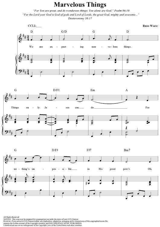 Digital Sheet Music for Marvelous Things by Russ Ware scored for Piano/Vocal/Chords; id:111288