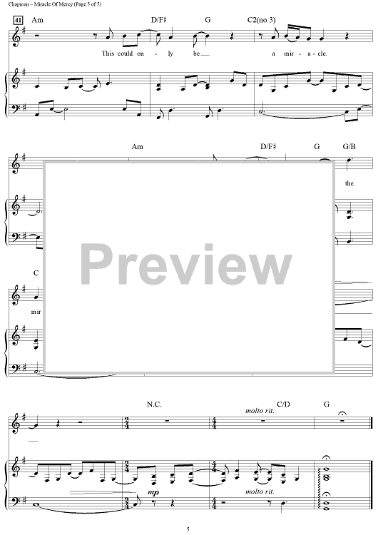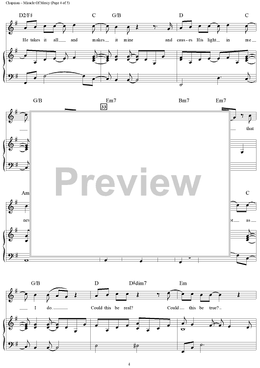 Digital Sheet Music for Miracle of Mercy by Steven Curtis Chapman scored for Piano/Vocal/Chords; id:119389