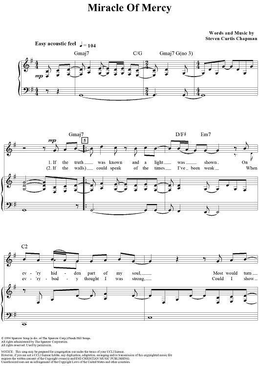 "Miracle of Mercy" Sheet Music by Steven Curtis Chapman