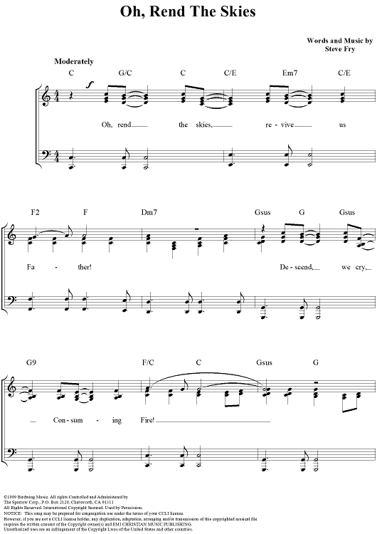 Digital Sheet Music for Oh, Rend The Skies by Steve Fry scored for Piano/Vocal/Chords; id:96000
