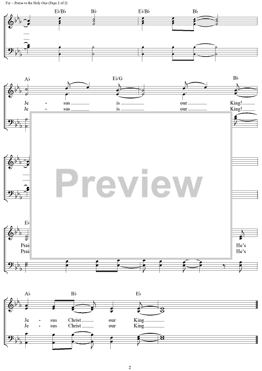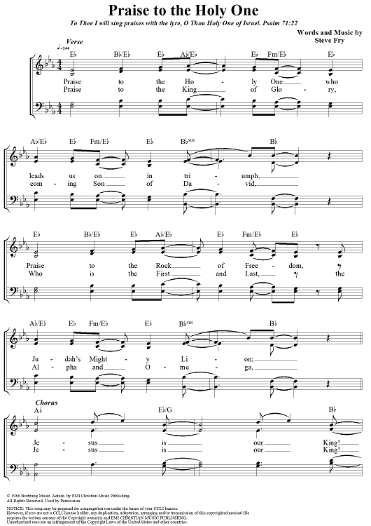 Digital Sheet Music for Praise to the Holy One by Steve Fry scored for Piano/Vocal/Chords; id:110824