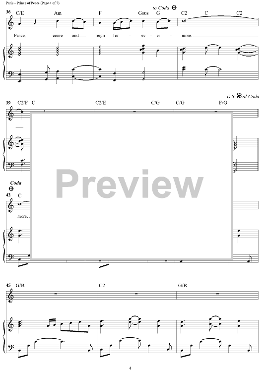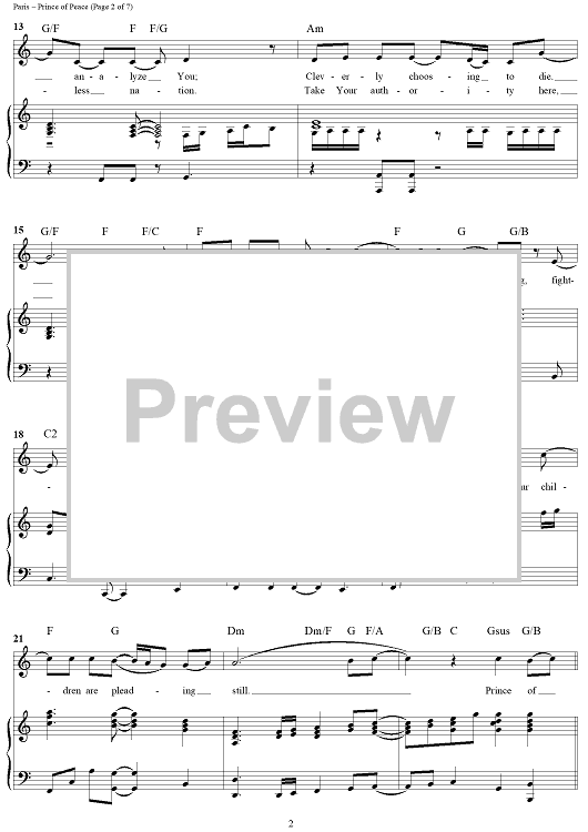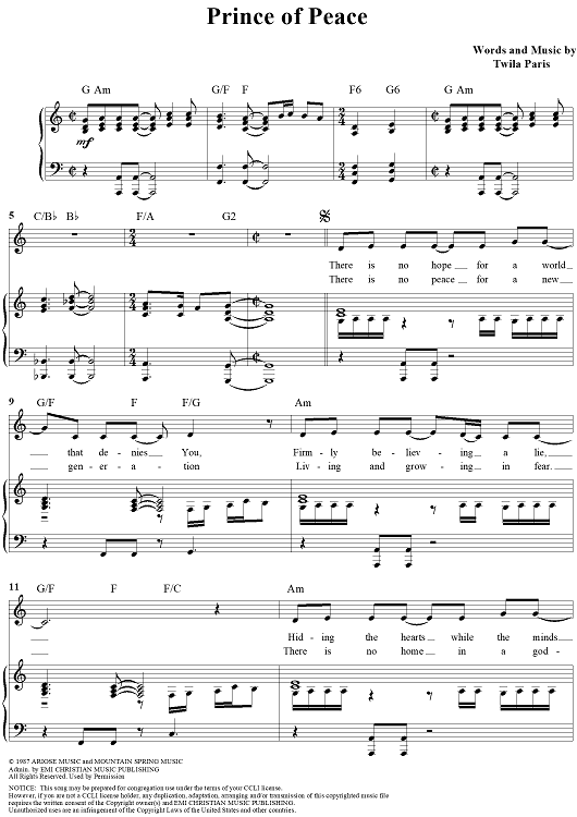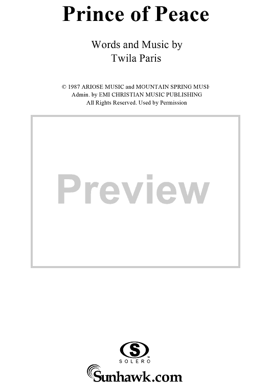 Digital Sheet Music for Prince of Peace by Twila Paris scored for Piano/Vocal/Chords; id:124082