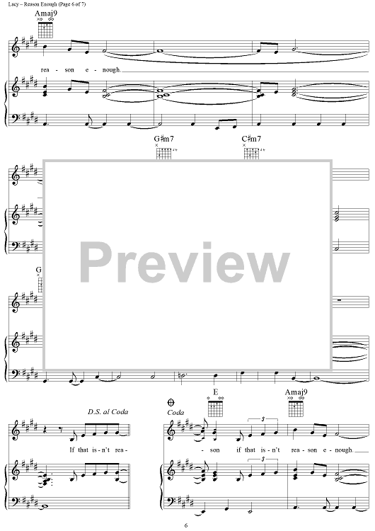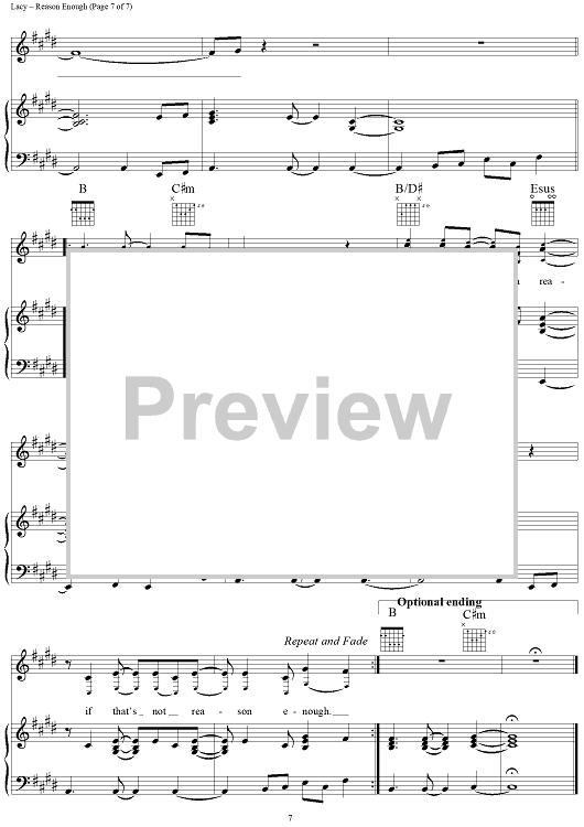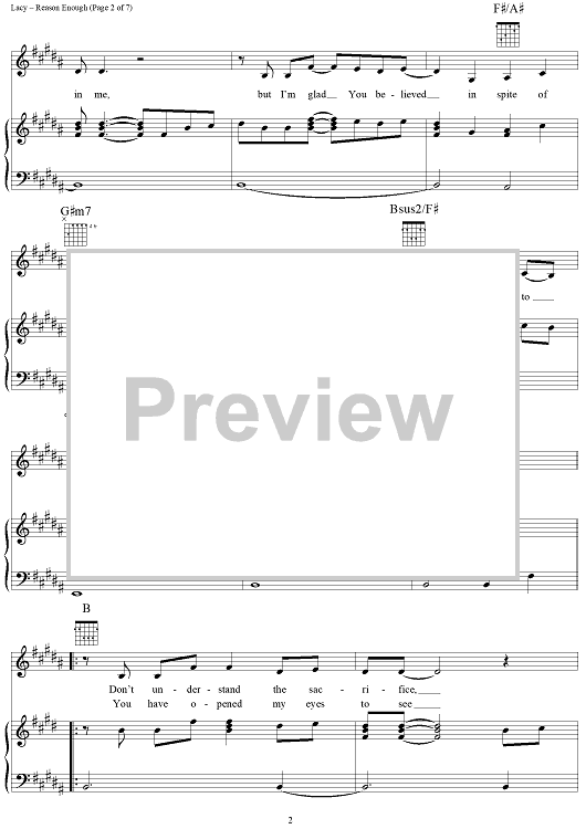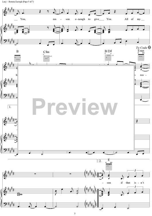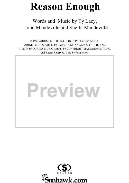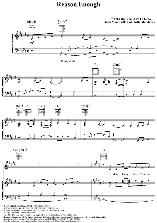Digital Sheet Music for Reason Enough by John Mandeville, Ty Lacy, Shelli Mandeville, Avalon scored for Piano/Vocal/Chords; id:250425