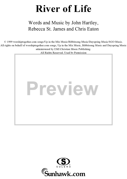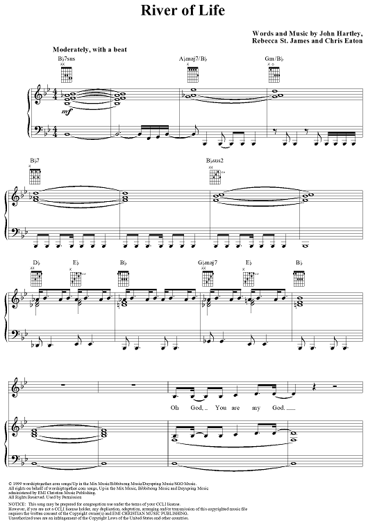 Digital Sheet Music for River Of Life by Rebecca St. James, Chris Eaton, John Hartley scored for Piano/Vocal/Chords; id:267267