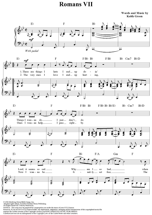 Digital Sheet Music for Romans VII by Keith Green scored for Piano/Vocal/Chords; id:112110