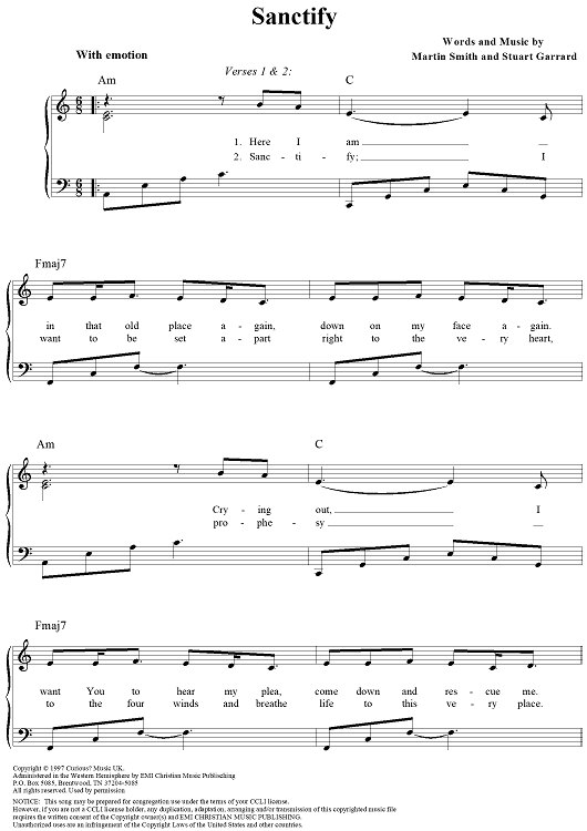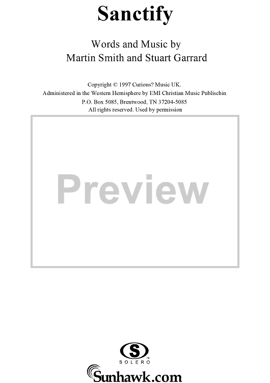 Digital Sheet Music for Sanctify by Martin Smith, Stu G scored for Piano/Vocal/Chords; id:119972