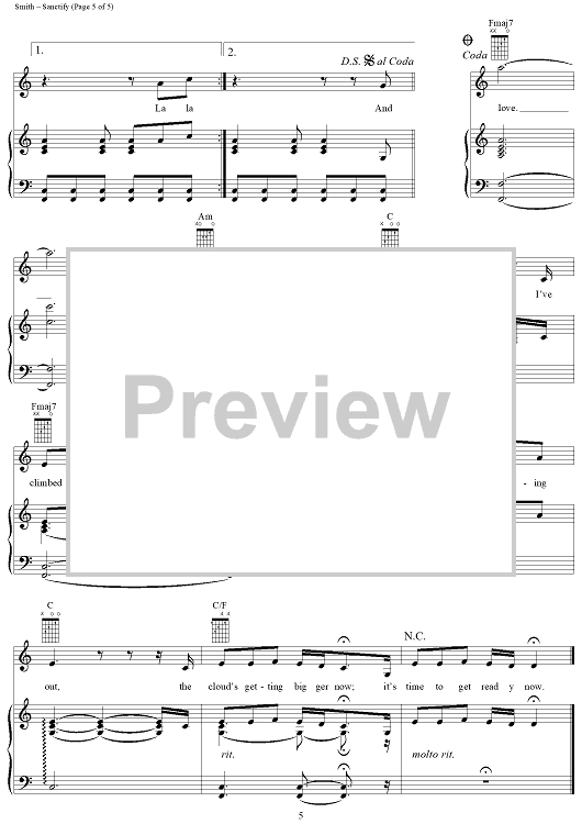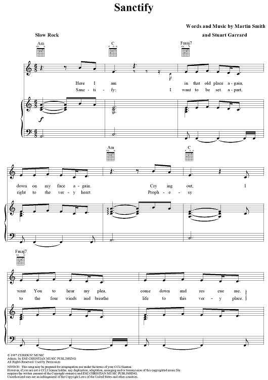 Digital Sheet Music for Sanctify by Martin Smith, Stu G, Delirious? scored for Piano/Vocal/Chords; id:258550