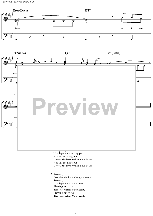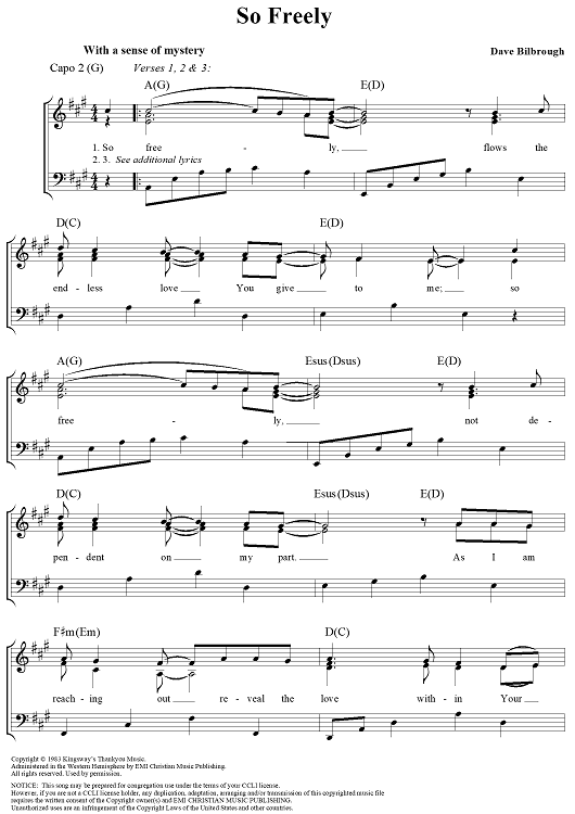 Digital Sheet Music for So Freely by Dave Bilbrough scored for Piano/Vocal/Chords; id:283060